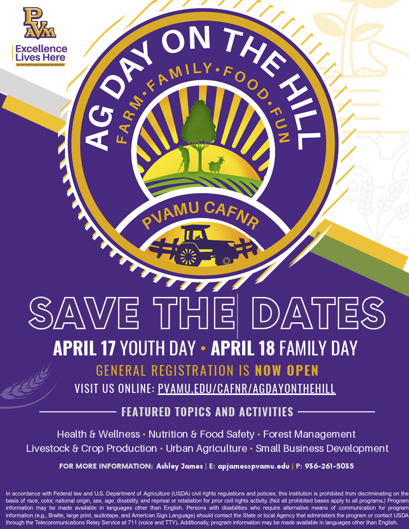 Ag Day On The Hill at Prairie View A&M University has a long and storied history of more than 35-years as an event for agriculture producers and members of the community to get an on-campus, first-hand experience with the ag researchers, program specialists, and other ag professionals within the College of Agriculture Food and Natural Resources (CAFNR).
